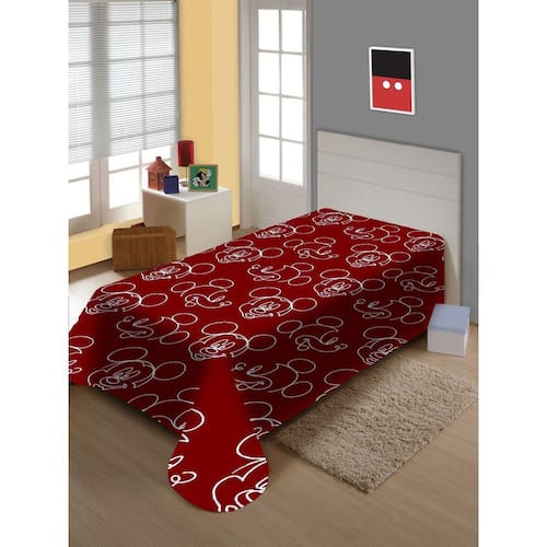 Manta Fun Solteiro Mickey Mouse C/Cinta 150X200M Jolitex - Vermelho