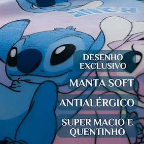 Manta infantil stitch super fofinha quentinha antialérgica Cor: stitch angel Deixe o descanso do seu pequeno mais aconchegante, divertido e protegido com a manta stitch Transforme o descanso do seu pequeno em um momento de conforto, diversão e proteção com a manta infantil stitch. Uma peça fofinha, quentinha e cheia de carinho que vai além de aquecer: ela traz segurança antialérgica e muito mais aconchego para o dia a dia. Seu filho a vai se apaixonar por essa manta com o personagem mais querido da disney. Imagine ver o sorriso no rostinho dele a ao se enrolar em uma manta super macia, quentinha e feita para proteger. É como dar um abraço carinhoso todos os dias, seja na hora do soninho, da tv ou até mesmo em viagens. Além de linda e divertida, ela transmite tranquilidade e bem-estar para as crianças, enquanto os pais ganham a certeza de oferecer o melhor em cuidado e qualidade. Garanta agora a manta infantil stitch e transforme os momentos de descanso em pura alegria e aconchego. Contém 1 peça 01 cobertor 2,20m x 1,50m Composição: Manta soft 1. A manta é realmente antialérgica Sim o tecido foi desenvolvido para ser hipoalergênico, protegendo a pele delicada das crianças. 2. Pode ser Utilizado em quais situações Perfeita para o berço, cama, sofá, viagens ou até para brincar e assistir tv. 3. A manta é pesada Não, ela é grossa e quentinha, mas leve o suficiente para oferecer conforto sem incomodar. 4. Pode ser lavada na máquina Sim, é prática e resistente, pode ser lavada na máquina sem perder maciez. 5. Qual o tamanho da manta Ela foi feita no tamanho ideal para crianças, oferecendo liberdade e aconchego. Não perca garanta agora a manta infantil stitch super fofinha e antialérgica e proporcione noites tranquilas e cheias de carinho para quem você mais ama. Marca: Não Informado