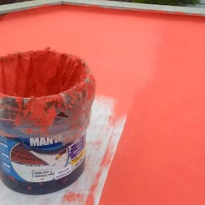 4 - primeira demão da mantatec líquida Preferencialmente inicie a impermeabilização da parte superior para a inferior do telhado.Aplique uma primeira demão em abundância da mantatec líquida pura diretamente no telhado, em abundancia com uma brocha ou pincel largo.