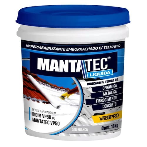 Está com problemas de infiltração e vazamentos na sua telha Não se preocupe, a mantatec telha é solução dos seus problemas, ela foi criada para combater as ações climáticas, inibindo qualquer tipo de umidade e infiltrações no seu telhado. Sobre o produto: A mantatec telha emborrachada, possui uma membrana elástica, impermeável e de alta resistência química a intempéries, permitindo uma ótima proteção estrutural impermeabilizante em todos os tipos de telhas. Possui fácil aplicação, não exigindo o uso de maçarico e fogo. É ótima em cobertura e acabamento. E além de tudo isso, contribui para o isolamento acústico e térmico do ambiente. Rendimento do balde 4kg: rende 3m Atenção: o rendimento pode variar de acordo com a superfície aplicada. O resultado é garantido Nossos produtos passam por um criterioso controle de qualidade, selecionando cuidadosamente a matéria prima, com perfeitas condições para garantir a sua satisfação. Os produtos se aplicados como o recomendado o resultado será garantido. Restou alguma dúvida Assista o nosso vídeo de aplicação explicativa em nosso canal, procure por loja do impermeabilizante e assista o passo a passo da impermeabilização. : Emitimos em todas as vendas, garantindo mais um ponto de segurança e confiança nas compras realizadas conosco. Quem somos A mogicor loja do impermeabilizante se tornou uma empresa pioneira no ramo de impermeabilização e tintas. Atuando nos maiores marketplaces a 6 anos, zelamos garantir a melhor experiência para nossos clientes Marca: Não Informado Ean: 173256887012