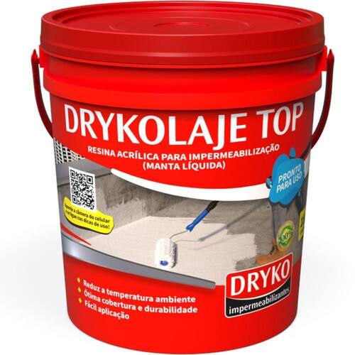 Produto: Manta líquida impermeabilizante para lajes 4kg - DRYKOLAJE TOP Marca: Dryko Descrição: A Manta líquida impermeabilizante para lajes 4kg - DRYKOLAJE TOP da Dryko é ideal para ser aplicada em lajes de cobertura sem trânsito de pessoas, pinturas refletivas em telhas de fibrocimento, proteção uv sobre o sistema de pintura asfáltica, sistema de pintura em fachada para jardim vertical. A DRYKOLAJE TOP é uma manta líquida à base de resina acrílica impermeabilizante com resistência aos raios UV, ozônio e a chuva direta com ótima cobertura de acabamento. Vantagens: • Pronto pra uso • Aplicação em forma de pintura • Produto atóxico • Alta durabilidade • Pode ser pigmentado.Especificações: Massa específica g/cm³ : 1,300 a 1,400Teor de sólidos % : 48 a 53Viscosidade krebs stormer Ku : 120 a 140Secagem entre demãos Horas : 2 a 3pH: mínimo 8Consumo: 1,0 a 1,2 kg/m2Acabamento: branco. Marca: Não Informado Ean: 7898959829536