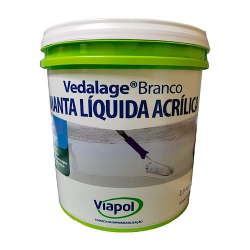 Vedalage® Branco é uma manta líquida pronta para uso à base de resina acrílica. Oferece alta elasticidade, flexibilidade e resistência às intempéries, além da propriedade de refletir os raios solares, proporcionado maior conforto térmico aos ambientes internos.