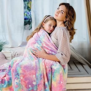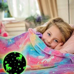 Após ser exposta à luz solar ou artificial, a manta emite um brilho suave no escuro, criando uma atmosfera relaxante e única. Ideal para crianças, adolescentes e adultos, é o presente perfeito para transformar o quarto em um espaço mágico.