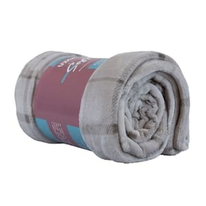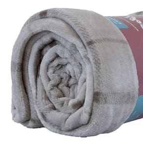 Manta Microfibra Flannel Soft Casal Estampado Xadrez 180x220cm - Uzoo Manta Microfibra Flannel Soft Casal Estampada 180x220cm Xadrez Bege