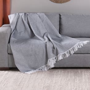 Manta Para Sofá Com Franja Grid 2,10m Jacquard Grafite