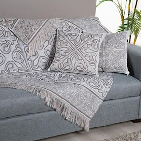 A manta para sofá Grécia confeccionada em tecido Jacquard pode ser utilizada para decorar o sofá, mas também protege de sujeitas e manchas de produtos não líquidos, e esconde imperfeições. Contém: 01 Xale 1,35m x 1,35m; 02 Capas de Almofada 45cm x 45cm; 02 Almofadas Siliconizadas 48cm x 48cm. Composição: Tecido: 60% Algodão - 40% Poliéster. Cor 1: Cáqui | Tipo de Sofá 1: Poltrona | Características 1: Estampado | Tecido 1: Jacquard | Marca: Valle Enxovais | Tipo de Sofá 2: Retrátil / Reclinável | Tipo de Sofá 3: Tradicional