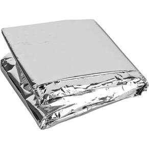 Com design moderno e acabamento prateado, a manta funciona como um cobertor de emergência, sendo extremamente útil em casos de resgate, primeiros socorros, caminhadas em trilhas, acampamentos e esportes ao ar livre. Sua estrutura à prova dágua garante proteção contra vento e umidade, contribuindo para maior conforto e segurança em situações adversas.