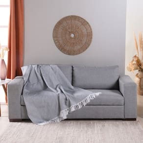 Essa Manta Xale para sofá em tecido Jacquard rústico é ideal para decoração e proteção. Possui desenhos geométricos modernos, franja na lateral proporcionando mais charme à decoração. Dê um toque de requinte e conforto para sua casa. Dupla face.