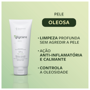 Máscara de limpeza facial para peles oleosas. Mantecorp Glycare Duo promove uma limpeza profunda que controla a oleosidade, reduz cravos e espinhas e hidrata.
