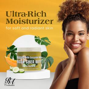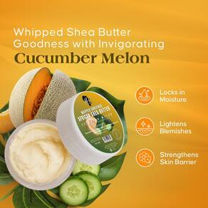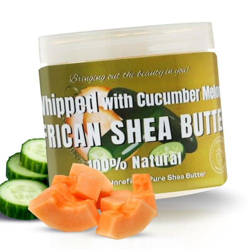 RA COSMETICS Manteiga de karité batida, pepino-melão - 340 g | Manteiga de karité africana 100% pura e natural para homens e mulheres - Hidratante artesanal definitivo com vitaminas essenciais para pele radiante