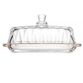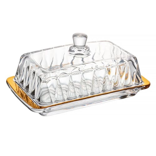 1 Manteigueira de Cristal com Tampa e Fio de Ouro Radial 18x10,5x8cm 220374 - Lyor