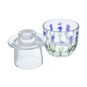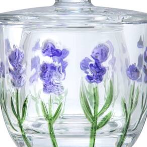 A Manteigueira Francesa Fleur é produzida 100% em vidro cristal, apresenta estampa florida com pintura manual em estêncil em alto relevo com flores de lavanda. A manteigueira é delicada e traz uma estética romântica para a mesa-posta.