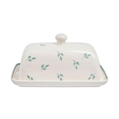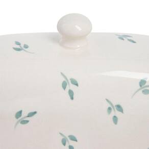 A manteigueira Leaf é confeccionada em cerâmica com estampa de pequenas folhas verdes, oferece delicadeza à mesa-posta. A manteigueira Vista é a forma adequada de armazenar manteigas, pode ser inserida diretamente na geladeira, evitando a exposição do alimento. Na mesa, a manteigueira evita luz, ar e a temperatura ambiente direto no alimento, que podem prejudicá-lo.