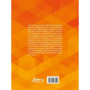 Este livro é um manual de alfabetização preparado a partir de estratégias pedagógicas, com o potencial de proporcionar a alfabetização dos estudantes em até 60 dias. Cada atividade orientada estabelece uma meta com o potencial de ser alcançada no seu tempo estimado. As principais ferramentas pedagógicas orientadas nesse método são os brinquedos à base de materiais palpáveis, os quais são importantes para desenvolver as brincadeiras e jogos que levam o estudante a desvendar os enigmas da construção da leitura em tempo recorde. Esse material é uma novidade que ajuda o estudante a aprender a ler e escrever. Conta com 30 poemas inéditos e instruções práticas capazes de orientar professores e pais de estudantes no processo de aquisição da leitura e da escrita.