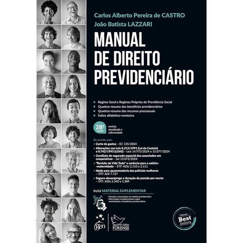 Best-seller em Direito Previdenciário, este Manual trata, de forma didática e aprofundada, do Regime Geral e dos Regimes Próprios da Previdência Social. Com quadros-resumo dos benefícios previdenciários e informações abrangentes e detalhadas sobre as ações previdenciárias, este livro é um instrumento essencial para os profissionais que atuam na área. É com grande honra que apresento esta obra, verdadeira referência na matéria, de autoria dos magistrados e professores João Batista Lazzari e Carlos Alberto Pereira de Castro, que se destacam tanto na carreira que abraçaram quanto no âmbito acadêmico. A prova insofismável disso é ter chegado o livro à sua 28ª edição, marco que raramente é atingido por obras jurídicas e que identifica a sua relevância no cenário doutrinário nacional e, por que não, internacional. Fica patente que, nessa construção, os autores mesclam sua vasta experiência na magistratura, de mais de 25 anos de toga, com suas pesquisas acadêmicas, também datadas de décadas, e sempre laureadas por todas as instituições de ensino que os receberam como pesquisadores. Dessa forma, a obra é um valioso contributo para o Direito Previdenciário Brasileiro, ao servir àqueles que iniciam seus estudos, mas também colaborando com a atuação dos profissionais cujo foco são os Direitos Fundamentais Sociais, e, ainda, os estudiosos dos cursos de pós-graduação – lato e stricto sensu. Estão de parabéns os autores, pelo êxito do livro, nesta quadra em que nos brindam com esta nova edição, revista, atualizada e reformulada. LUIZ FUX Ministro do Supremo Tribunal Federal ?