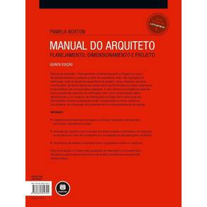 Título do livro : Manual do Arquiteto Subtítulo do livro : Planejamento, Dimensionamento e Projeto Autor : Buxton, Pamela Idioma : Português Editora do livro : BOOKMAN COMPANHIA EDITORA LTDA.,Taylor & Francis, UK Capa do livro : Dura Ano de publicação : 2017 Quantidade de páginas : 834 Altura : 280 mm Largura : 210 mm Peso : 1850 g Gênero do livro : Acadêmico Subgêneros do livro : Arquitetura Data de publicação : 01-12-2017
