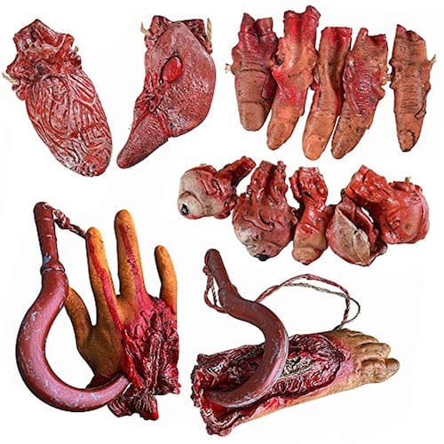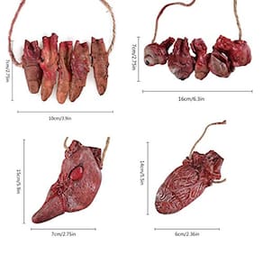 Descrição do produto Pacote incluído: 1x mão falsa 1x pé falso 1x olhos falsos 1x dedos falsos 1x coração falso 1x fígado falso Material: latex macio & proteção ambiental PP tecido de algodão Tamanho: Mão Falsa: Comprimento: 17cm / 6.7inch, Largura: 9cm / 3.5inch, Peso: 30 g Pé falso: Comprimento: 16cm / 6.3inch, largura: 5cm / 3inch, Peso: 25g Olhos Falsos: Comprimento: 11cm / 4.3inch / Largura: 8cm / 3.1inch, Peso: 25g Dedos Falsos:Comprimento: 10cm / 3.9inch, Largura: 8cm / 3.1inch, Peso: 23 g de decoração de festa de Halloween Bloody Dead Body É perfeito para adereços de Halloween, decorações de bar, decoração de casa assombrada, paródia truques, muito realista, fazem muita diversão.