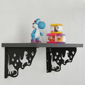 Mão Francesa Preta Aço Decorativa 20cm Dinossauros Menino para Prateleira Zarg.