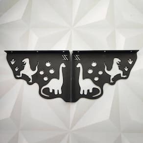 Como saber qual mão francesa usar? É simples, procure pela Zarg e escolha o desenho que mais combina com seu ambiente. Além de instalar uma prateleira com as mãos francesas pretas a qualidade é fundamental, nossas peças possuem pinturra epóxi premium, 2mm de espessura e aguentam uma carga de até 20kg. O recomendado é manter um visual contemporâneo usando da mão francesa decorativa. Esta mão francesa, conhecida também como suporte águia para prateleira possui desenho de dinossauros e encantam os pequenos onde quer que sejam instaladas. Marca: Zarg