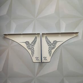 Garantia: 90 dias / Peso: 0,600kg / Cor: branca / Referência: DECORACAO04BC Dimensões: 20cm (C) x 2cm (L) x 15cm (A); Recomendados para uso com prateleiras de 20cm a 25cm, de madeira. Para prateleiras de vidro, necessário cuidado para perfuração ou adaptação com ventosa. Capacidade: 20kg; Desenho: beija-flor. Espessura do aço: 2mm; Pintura: Epóxi; Cuidados: Limpar apenas com pano macio, não usar abrasivos e não ultrapassar o peso máximo indicado; Conteúdo da embalagem: 1 mão francesa lado direito; 1 mão francesa lado esquerdo; kit de fixação. Material: aço carbono pintado em epóxi, tendo acabamento premium, com alta resistência, de superfície lisa que facilita a limpeza.