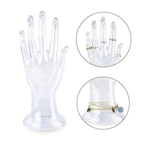 A mão expositora para joias é um suporte sofisticado e funcional, ideal para destacar anéis, pulseiras e braceletes de maneira elegante e organizada. Fabricada em acrílico transparente de alta qualidade que garante resistência e um visual moderno. Com design anatômico, ela tem um formato de mão estilizado para acomodar as joias de forma natural e atraente. Por ser transparente, realça as peças sem interferir na sua aparência. Sua base é estável, evitando quedas. Perfeito para vitrines de joalherias, lojas de bijuterias ou até mesmo organização pessoal. Uma peça ideal para quem deseja exibir suas joias com sofisticação e minimalismo.