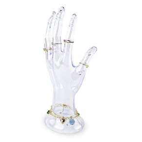 A mão expositora para joias é um suporte sofisticado e funcional, ideal para destacar anéis, pulseiras e braceletes de maneira elegante e organizada. Fabricada em acrílico transparente de alta qualidade que garante resistência e um visual moderno. Com design anatômico, ela tem um formato de mão estilizado para acomodar as joias de forma natural e atraente. Por ser transparente, realça as peças sem interferir na sua aparência. Sua base é estável, evitando quedas. Perfeito para vitrines de joalherias, lojas de bijuterias ou até mesmo organização pessoal. Uma peça ideal para quem deseja exibir suas joias com sofisticação e minimalismo.