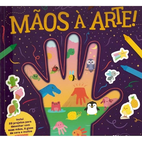Mãos À Arte Tudo Que Você Precisa Para Desenhar Com As Mãos Você Encontra Neste Livro Sabia Que Você Pode Traçar O Contorno De Sua Mão E Transformálo Em Uma Galinha Um Gato Uma Águaviva Ou No Que Quiser É Muito Fácil E Divertido Siga As Dicas E Complete Seu Desenho Com Os Adesivos Inclui 20 Projetos Para Desenhar Com Suas Mãos 8 Gizes De Cera E 3 Folhas De Adesivos