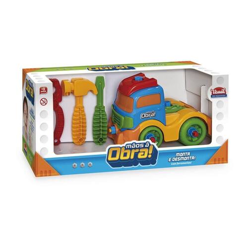 O caminhão Mãos a Obra tem cores vibrantes e vem com lindos acessórios.