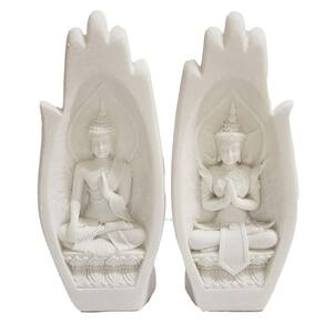Mãos Decorativas Oração Buda Sidarta Resina Plástica Branca Mãos Decorativas Oração com Buda Sidarta Mudra Dar e Receber de Resina Plástica Branca