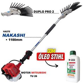 Derriçadeira Profissional Nakashi DD2L262Mcom Haste 1100mm Motor Mitsubishi TU26 de 25,6cc e Kit Duplo Pro 2 + Óleo Castrol Stihl 500ml