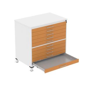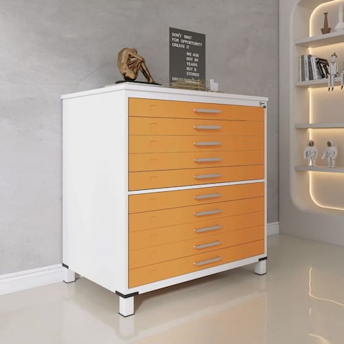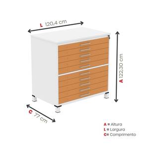 Mapoteca 10 Gavetas 120,4cm X 122,3cm Aço Branco/Laranja Picasso