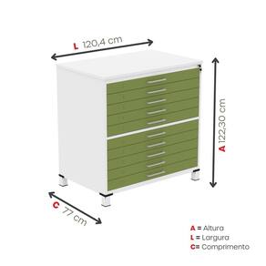 Mapoteca 10 Gavetas 120,4cm X 122,3cm Aço Branco/Verde Miró - Branco | Verde