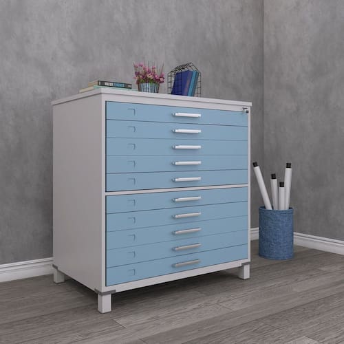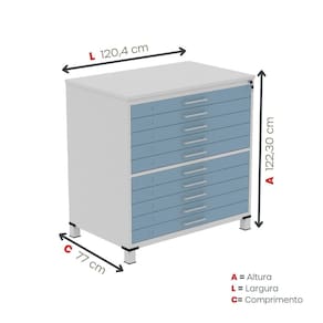 Mapoteca 10 Gavetas Map10 120,4cm X 122,3cm Aço Cinza/Azul Dali