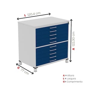 Mapoteca 10 Gavetas Map10 120,4cm X 122,3cm Aço Cinza/Azul Delrei