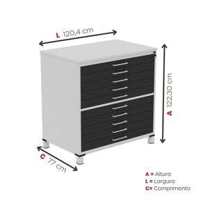 Mapoteca 10 Gavetas Map10 120,4cm X 122,3cm Aço Cinza/Preto