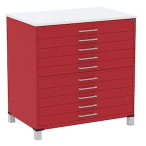 Mapoteca 10 Gavetas Pandin 120 Cm (larg) Inmetro Tampo Mdp Branco Estrutura E Gaveta Em Aço Vermelho