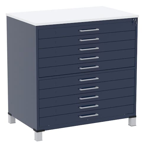 Fabricada com chapa de aço resistente, a mapoteca de aço galvanizado foi desenvolvida com um processo de tratamento anticorrosivo de nanotecnologia e pintada com tinta híbrida eletrostática para maior durabilidade. Com chapas mistas de aço #22 (0,75mm), #24 (0,60mm) e tampo em MDP de 25mm, garante robustez e eficiência perfeitas para espaços de trabalho que necessitam de armazenamento especializado.