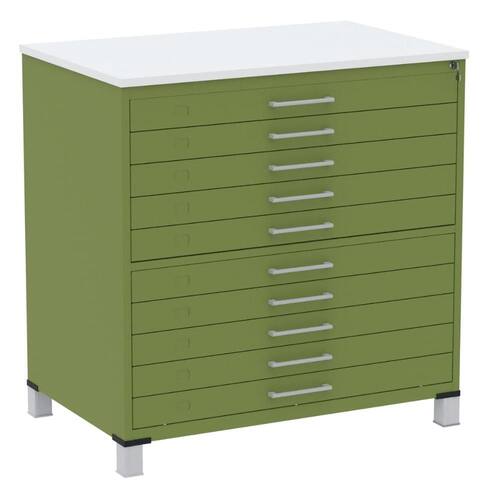 Fabricada com chapa de aço resistente, a mapoteca de aço galvanizado foi desenvolvida com um processo de tratamento anticorrosivo de nanotecnologia e pintada com tinta híbrida eletrostática para maior durabilidade. Com chapas mistas de aço #22 (0,75mm), #24 (0,60mm) e tampo em MDP de 25mm, garante robustez e eficiência perfeitas para espaços de trabalho que necessitam de armazenamento especializado.