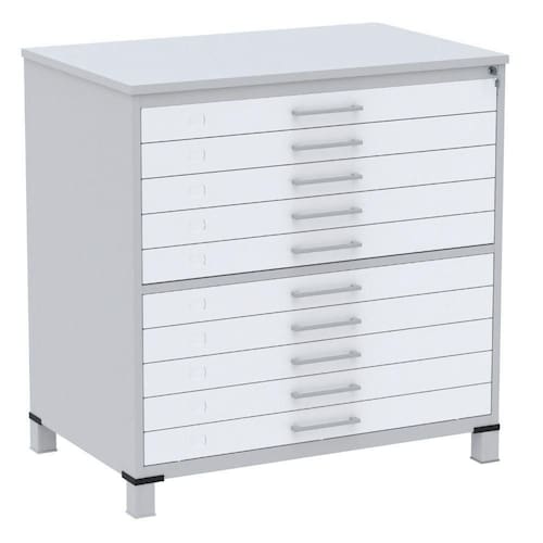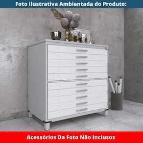 Mapoteca 10 Gavetas Pandin 120 Cm (larg) Inmetro Tampo Mdp Cinza Estrutura Aço Cinza Gavetas Brancas