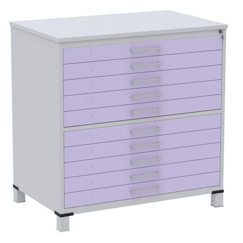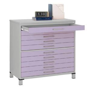 Mapoteca 10 Gavetas Pandin 120 cm (Larg) Inmetro Tampo MDP Cinza Estrutura Aço Cinza Gavetas Lilás