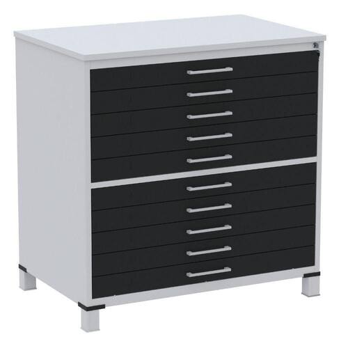 Mapoteca 10 Gavetas Pandin 120 Cm (larg) Inmetro Tampo Mdp Cinza Estrutura Aço Cinza Gavetas Pretas