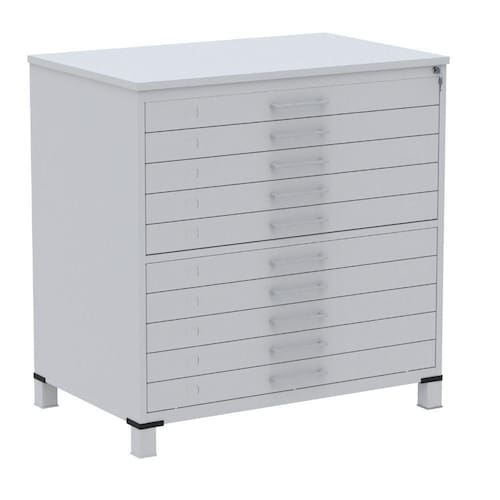 Fabricada com chapa de aço resistente, a mapoteca de aço galvanizado foi desenvolvida com um processo de tratamento anticorrosivo de nanotecnologia e pintada com tinta híbrida eletrostática para maior durabilidade. Com chapas mistas de aço #22 (0,75mm), #24 (0,60mm) e tampo em MDP de 25mm, garante robustez e eficiência perfeitas para espaços de trabalho que necessitam de armazenamento especializado.