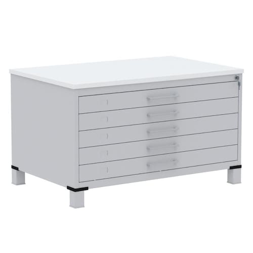 Fabricada com chapa de aço resistente, a mapoteca de aço galvanizado foi desenvolvida com um processo de tratamento anticorrosivo de nanotecnologia e pintada com tinta híbrida eletrostática para maior durabilidade. Com chapas mistas de aço #22 (0,75mm), #24 (0,60mm) e tampo em MDP de 25mm, garante robustez e eficiência perfeitas para espaços de trabalho que necessitam de armazenamento especializado.