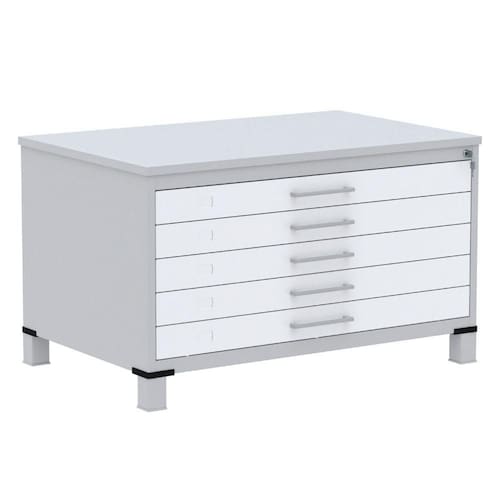 Fabricada com chapa de aço resistente, a mapoteca de aço galvanizado foi desenvolvida com um processo de tratamento anticorrosivo de nanotecnologia e pintada com tinta híbrida eletrostática para maior durabilidade. Com chapas mistas de aço #22 (0,75mm), #24 (0,60mm) e tampo em MDP de 25mm, garante robustez e eficiência perfeitas para espaços de trabalho que necessitam de armazenamento especializado.