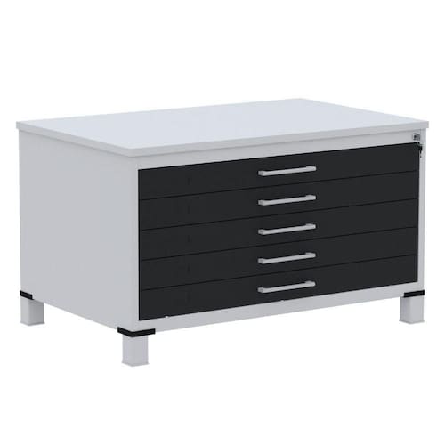 Mapoteca 5 Gavetas Pandin 120 Cm (larg) Inmetro Tampo Mdp Cinza Estrutura Aço Cinza Gavetas Pretas