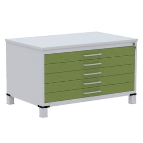 Mapoteca 5 Gavetas Pandin 120 cm (Larg) Inmetro Tampo MDP Cinza Estrutura Aço Cinza Gavetas Verdes