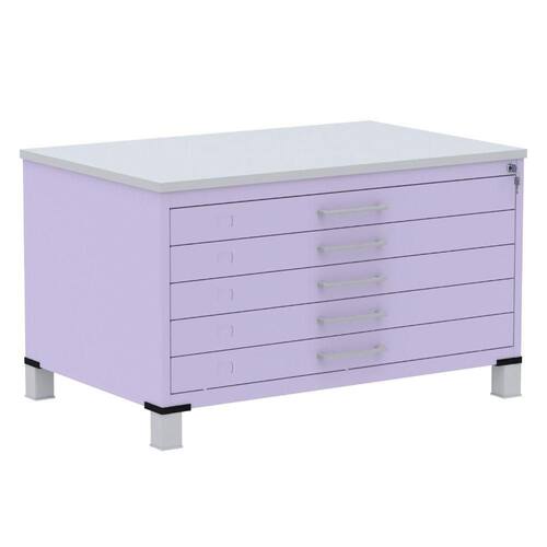 Mapoteca 5 Gavetas Pandin 120 cm (Larg) Inmetro Tampo MDP Cinza Estrutura e Gavetas em Aço Lilás