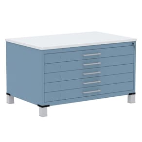 Mapoteca 5 Gavetas Pandin 120cm (Larg) Inmetro Tampo MDP Branco Estrutura e Gaveta em Aço Azul Dali - Cinza