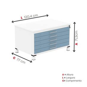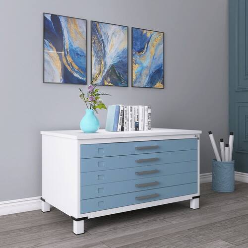 Mapoteca Mont 5 Gavetas 71,3cm X 120,4cm Aço Branco/Azul Dali