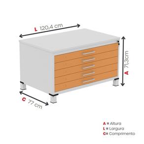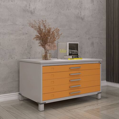 Mapoteca Mont 5 Gavetas 71,3cm X 120,4cm Aço Cinza/Laranja Picass